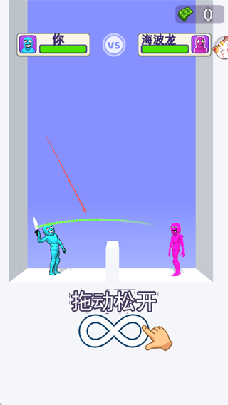 2、拖動武器調(diào)整角度和力度,松開后發(fā)射武器攻擊對手。