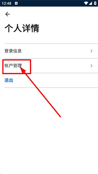 3、在個人詳情頁面,點擊帳戶管理,進入管理您的賬號頁面。