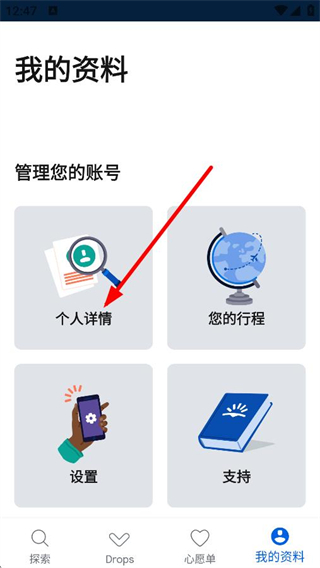 2、在個人資料頁面,點擊個人詳情,進入個人詳情頁面。