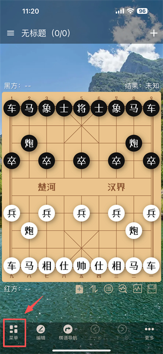 1、打開象棋類APP,點(diǎn)擊左下角菜單選項(xiàng),展開功能列表。