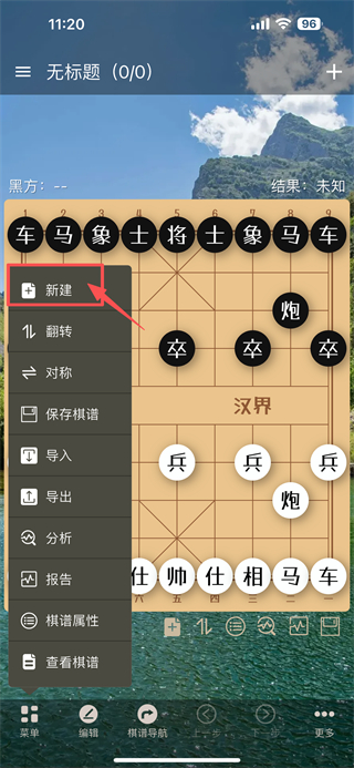 4、在目錄選擇頁面,點(diǎn)擊底部新建按鈕,完成棋譜的創(chuàng)建操作。