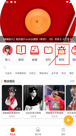 1、打開戲曲類APP,點(diǎn)擊劇院分類標(biāo)簽,進(jìn)入劇院推薦頁(yè)面。