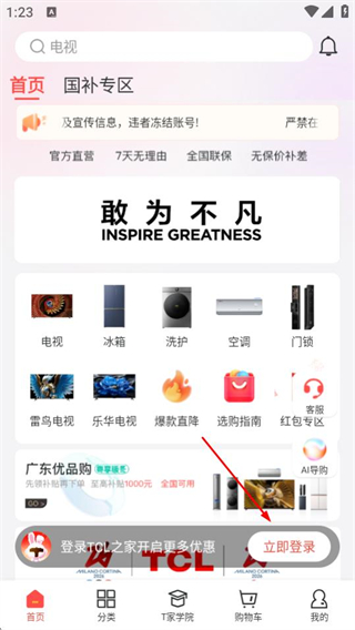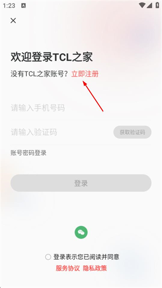 1、在TCL之家首頁,點擊立即登錄按鈕,進入登錄頁面。