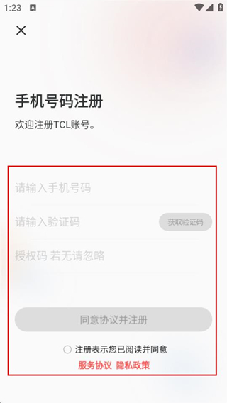 3、在注冊頁面,輸入信息,勾選協(xié)議后點擊注冊按鈕,完成注冊操作。