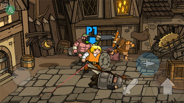 1、操控角色在城鎮(zhèn)中與敵人戰(zhàn)斗,利用武器和盾牌攻擊、防御,擊敗敵人。