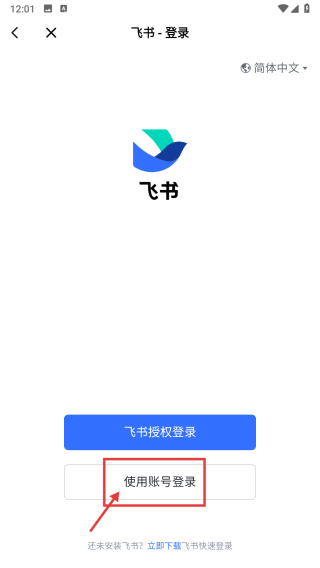 3、在飛書(shū)登錄頁(yè)面,點(diǎn)擊使用賬號(hào)登錄選項(xiàng),切換至賬號(hào)登錄界面。