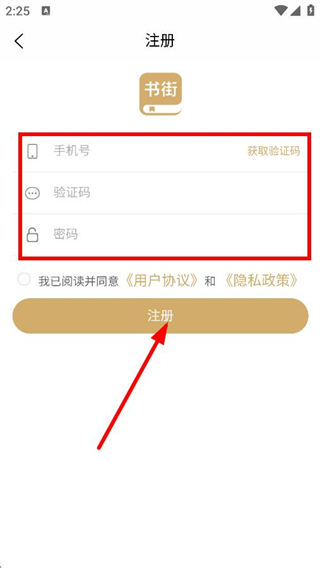 4、輸入手機號、驗證碼和密碼,點擊注冊,完成注冊操作。