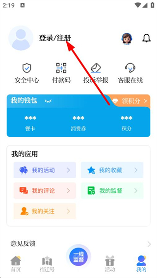 3、在個人頁面,點擊登錄/注冊,進(jìn)入登錄頁面。