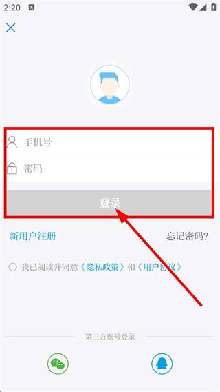 4、在登錄頁面,輸入手機號和密碼,點擊登錄,完成登錄操作。
