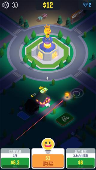 4、花費(fèi)資金購(gòu)買新建筑如花費(fèi)$1.1,提升燈泡容量和生產(chǎn)速度,持續(xù)發(fā)展光之城。