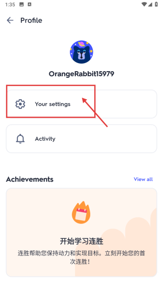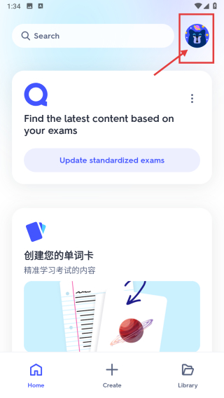 1、打開學(xué)習(xí)類APP,點(diǎn)擊右上角頭像,進(jìn)入個(gè)人資料Profile頁面。