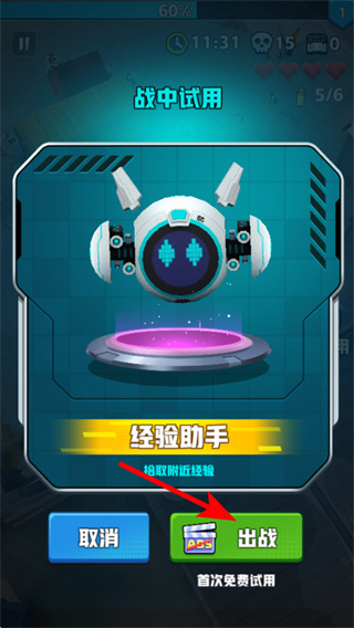 4、在功能界面選擇出戰(zhàn)輔助道具,道具選擇是提升效率的重要操作,選擇后可借助輔助道具快速積累經驗,加速角色成長。