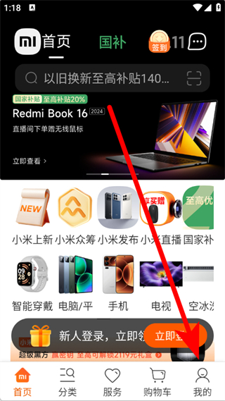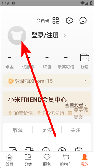 1、打開小米商城,點擊底部導(dǎo)航欄我的,進(jìn)入個人頁面。