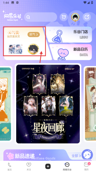1、打開(kāi)文創(chuàng)類APP,點(diǎn)擊網(wǎng)易樂(lè)谷選項(xiàng),進(jìn)入網(wǎng)易樂(lè)谷頁(yè)面。
