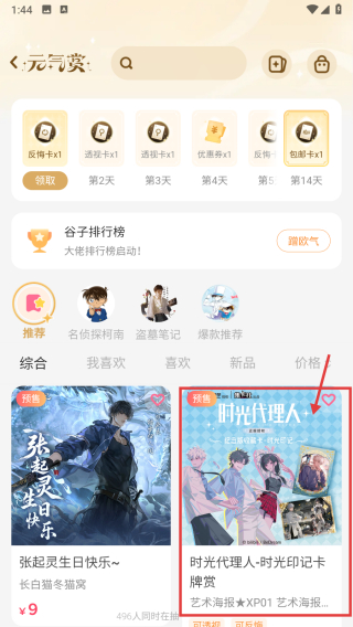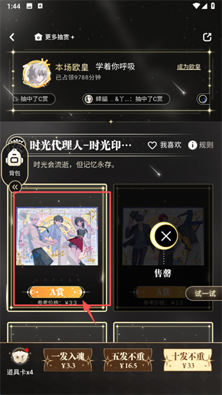 3、在元?dú)赓p抽賞頁(yè)面,選擇時(shí)光代理人-時(shí)光印記卡牌抽賞活動(dòng),進(jìn)入活動(dòng)詳情頁(yè)面。