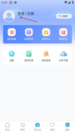 1、在首頁點擊我的,進(jìn)入個人中心界面。
