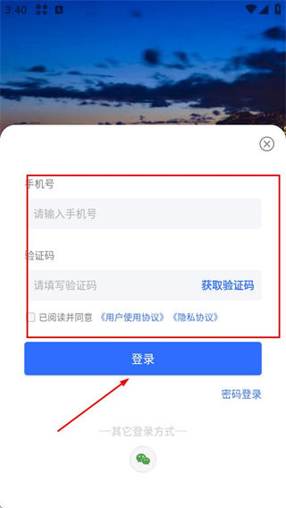 3、在登錄界面輸入信息,勾選協(xié)議后點擊登錄即可完成注冊登錄。
