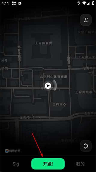 1、在地圖界面點(diǎn)擊開跑,進(jìn)入跑步記錄開始界面。
