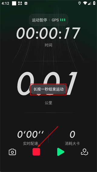 4、暫停運(yùn)動后,長按紅色結(jié)束鍵并保持一秒可結(jié)束運(yùn)動。