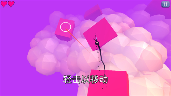 1、輕擊屏幕控制觸須精靈在粉色方塊間移動(dòng),移動(dòng)時(shí)需注意方塊的位置和距離,避免掉落。