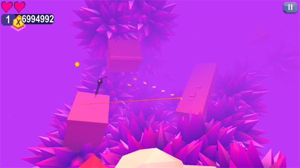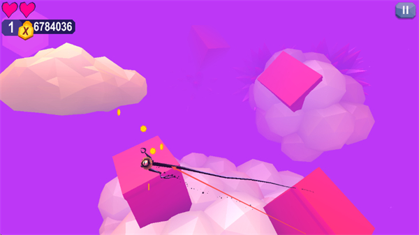 1、輕擊屏幕控制觸須精靈在粉色方塊間移動,收集金幣積累分?jǐn)?shù)。