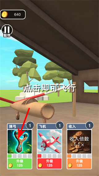 2、在界面中升級(jí)彈弓道具,道具升級(jí)是增強(qiáng)動(dòng)力的核心步驟,升級(jí)后可提升飛機(jī)的初始飛行動(dòng)力,助力飛行距離的提升。