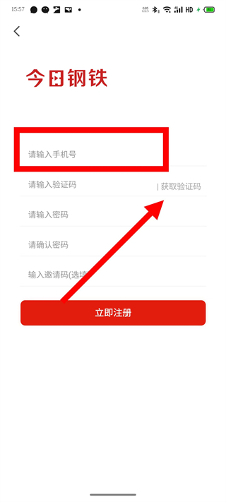 3、在注冊(cè)頁面,輸入手機(jī)號(hào)碼,點(diǎn)擊獲取驗(yàn)證碼。