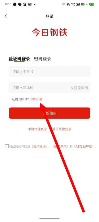 2、在登錄頁面,點(diǎn)擊立即注冊(cè),進(jìn)入注冊(cè)流程。