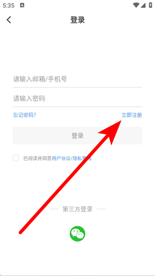 3、在登錄界面,點擊立即注冊,進入注冊流程。
