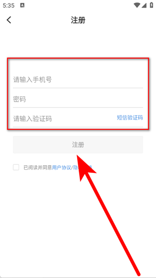 4、輸入手機號,點擊驗證碼獲取并輸入驗證碼,勾選后,點擊注冊按鈕,完成注冊。