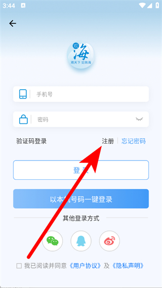 3、在登錄界面,點擊注冊,進入注冊流程。