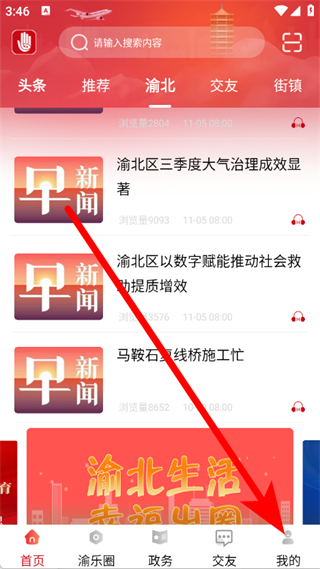1、打開渝北掌媒,在首頁點擊底部我的,進(jìn)入我的頁面。
