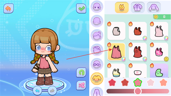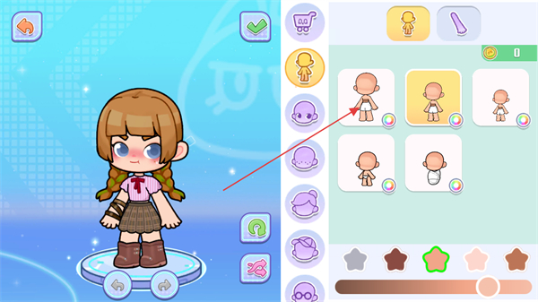 4、下劃列表可以更換人偶的衣服褲子等服裝類別,并且可以更改服裝顏色。