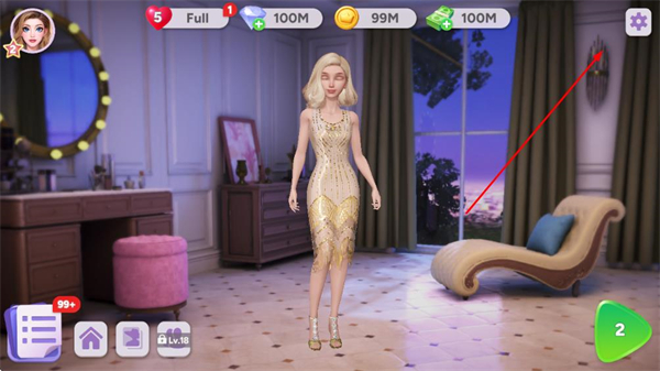 1、打開好萊塢心動時刻游戲,點擊右上角的設置圖標進入設置界面。