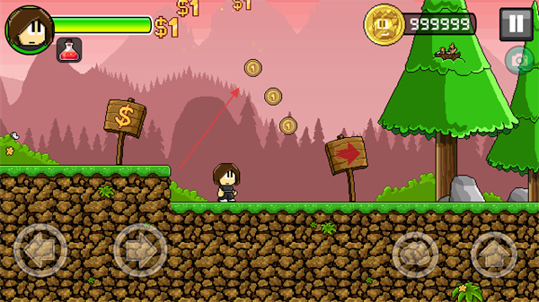2、移動角色收集金幣,沿著箭頭指向的路徑前進,積累財富和分數(shù)。