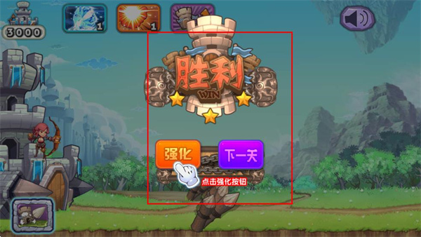 4、完成關卡后,界面顯示“勝利”,可點擊“強化”或“下一關”按鈕進行后續(xù)操作。