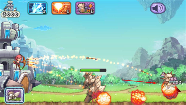 3、進入游戲后,操控角色發(fā)射弓箭,攻擊前來的怪物。