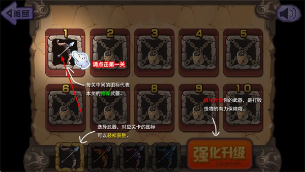 1、點擊帶有“關卡模式”的按鈕,進入關卡選擇界面。