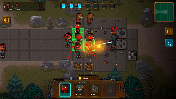 2、戰(zhàn)斗中通過士兵的協(xié)同攻擊,對(duì)敵人造成大量傷害,快速清剿敵人。