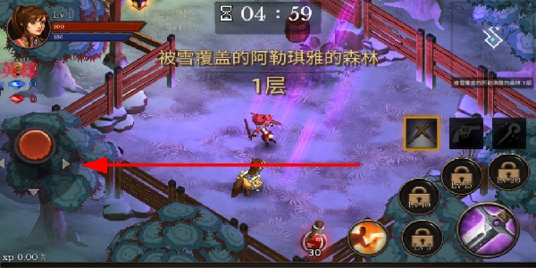 1、通過搖桿移動,在地牢場景中操控角色行動,探索不同區(qū)域,尋找怪物和道具,推進地牢冒險進程。