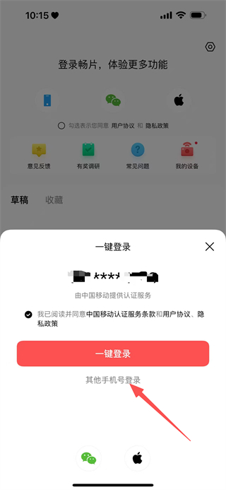 3、在登錄選項彈窗中,點擊其他手機號登錄,進入手機號登錄頁面。