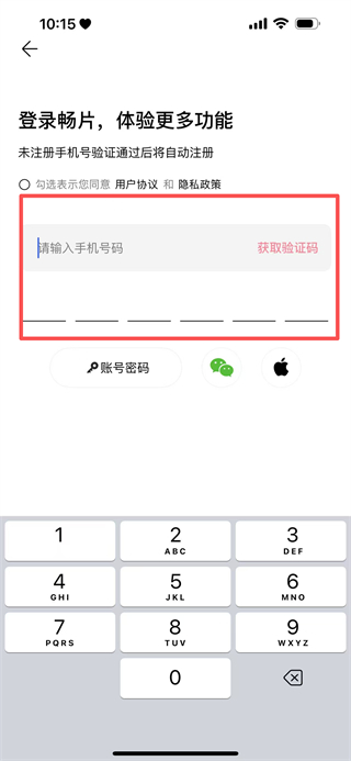 4、在手機號登錄頁面,輸入手機號碼,點擊獲取驗證碼,輸入驗證碼后完成登錄操作。