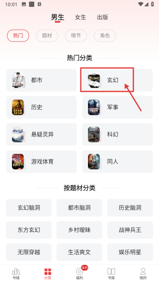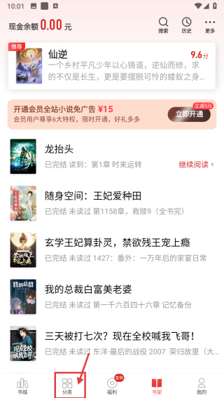 1、打開小說閱讀類APP,點(diǎn)擊底部分類選項(xiàng),進(jìn)入分類頁面。