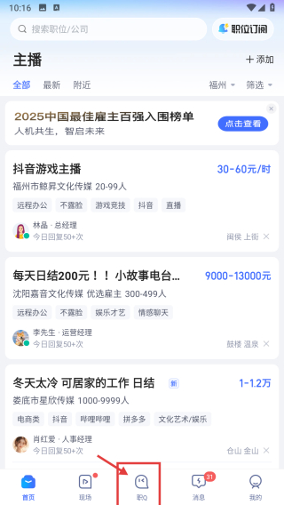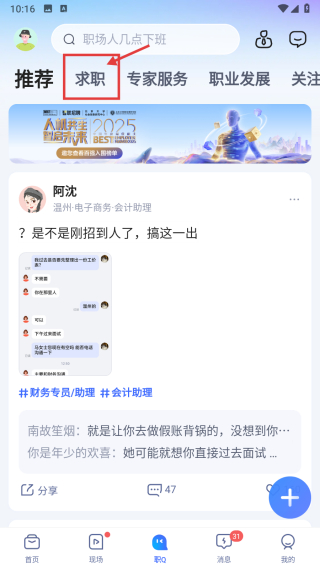 1、打開求職類APP,點(diǎn)擊底部求職選項(xiàng),進(jìn)入求職頁(yè)面。