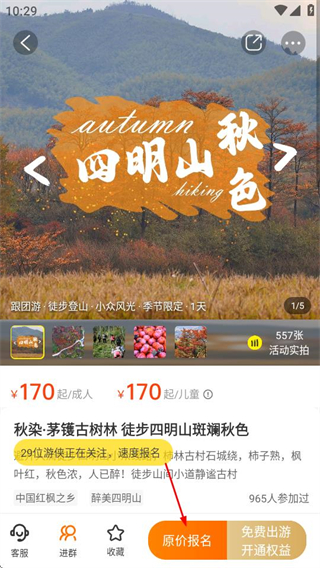 4、在活動詳情頁面,點擊原價報名按鈕,可進行該活動的報名操作。