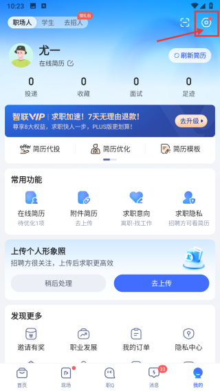 1、打開(kāi)求職類(lèi)APP,點(diǎn)擊底部我的選項(xiàng),進(jìn)入個(gè)人中心頁(yè)面。
