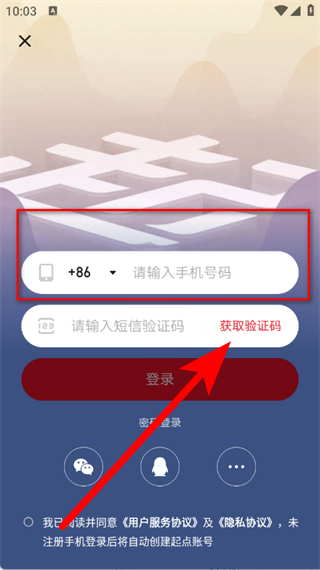 3、在注冊(cè)頁面,輸入手機(jī)號(hào)碼后,點(diǎn)擊獲取驗(yàn)證碼。