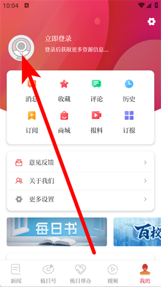 1、打開極目新聞客戶端,點(diǎn)擊底部導(dǎo)航欄我的,進(jìn)入個(gè)人中心頁面。