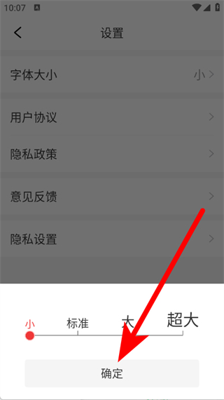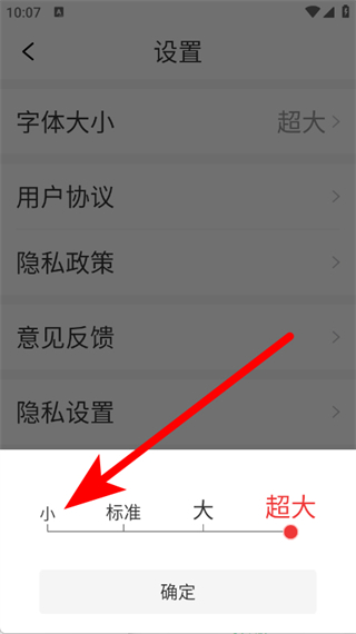 3、在彈出的字體大小彈窗,點(diǎn)擊選擇小。