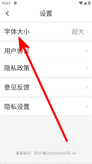 2、在設(shè)置頁面,點(diǎn)擊字體大小選項(xiàng)。